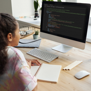 Linke drittel eines Laptops auf einen in der Mitte geteilten rosa Tropfen